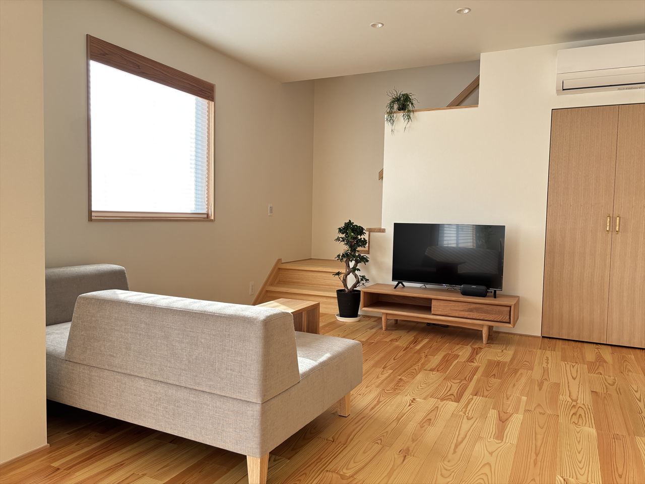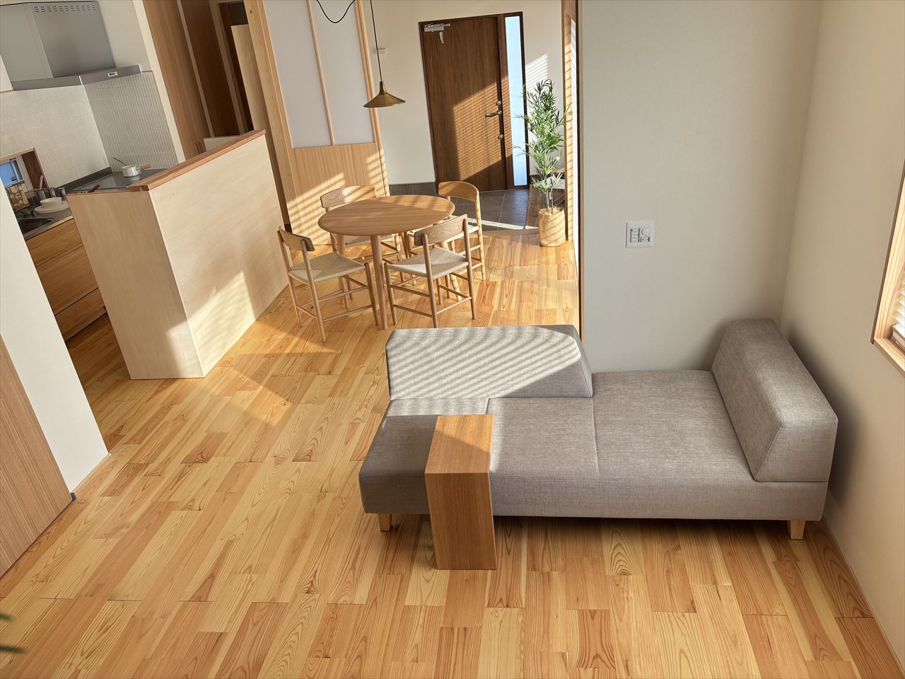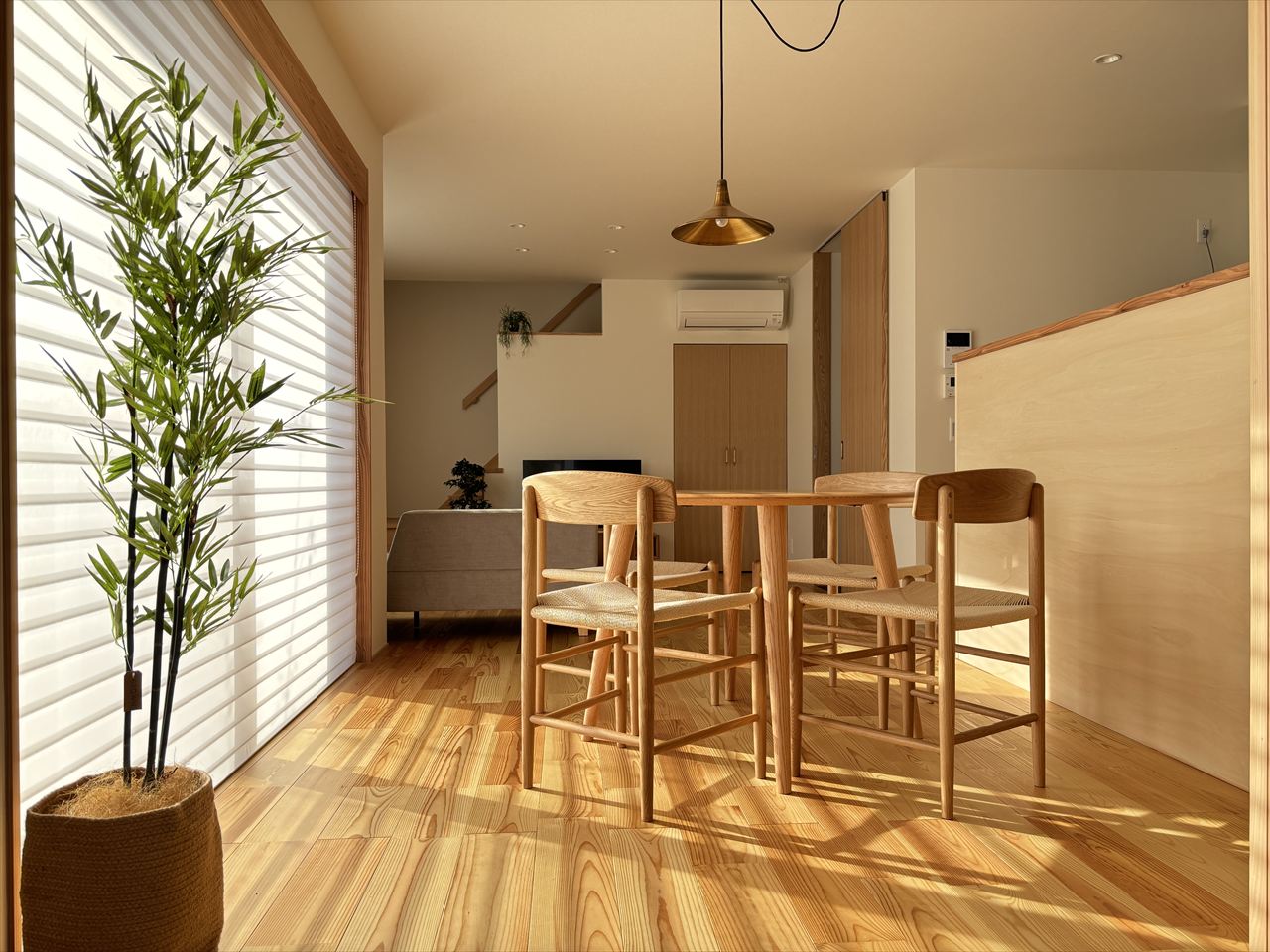 天然素材をふんだんに使われる工務店様のモデルハウスに家具を納品させて頂きました。床材や布クロスなど使用し、空気が本当に綺麗で匂いも残らない、そんな清々しい空間に天然木の家に合う家具をコーディネートさせて頂きました。