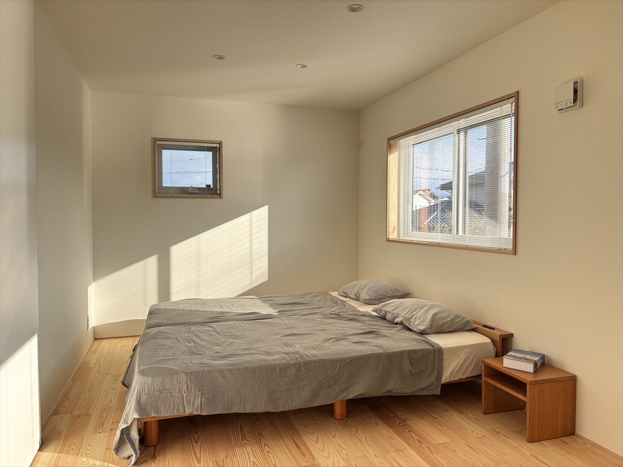 寝室には、弊社スリーピーのベッドフレーム&マットレスを使わせて頂きました。